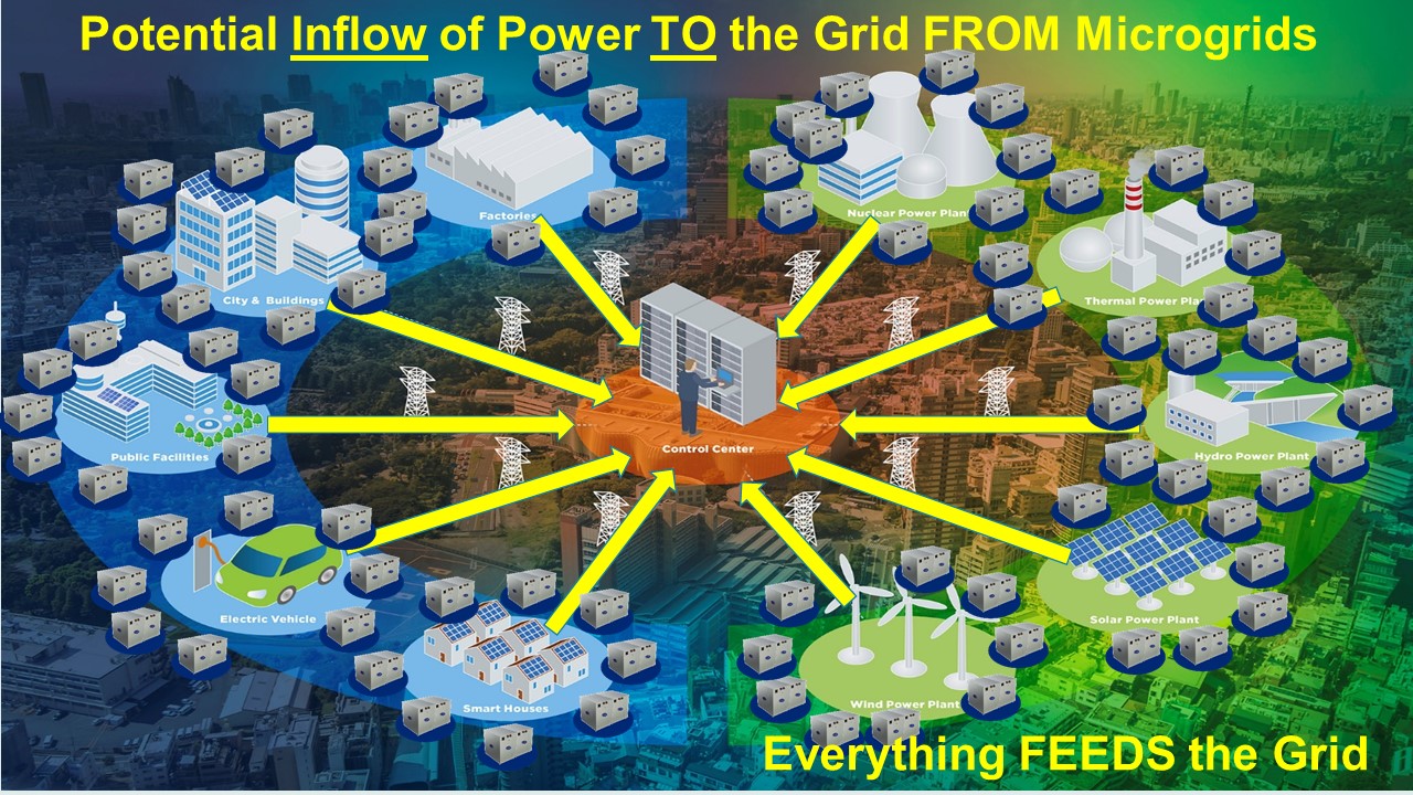 In the NEW Electric MODEL, Major Buildings have their OWN MIcroGrid.In the event of an OUTAGE on the Grid, the MicroGrids Feed the Grid with Fresh Power.